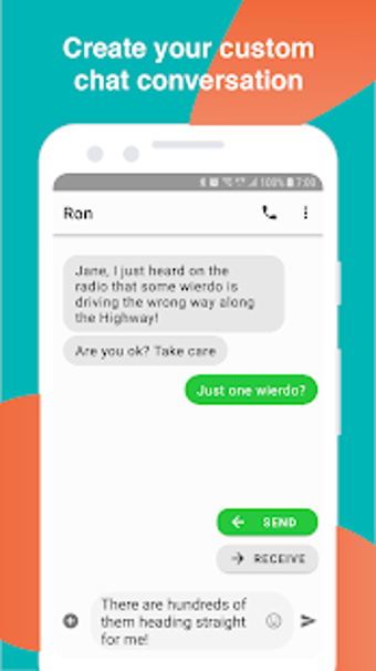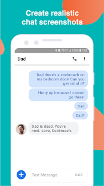 This utility app adds a watermark to every message panel that you make to avoid the possibility of exploiting it and using Text Message Creator for malicious intent. Note that this tool is limited to only creating fake text conversations. That means you can't use it to generate fake calls or social media posts.